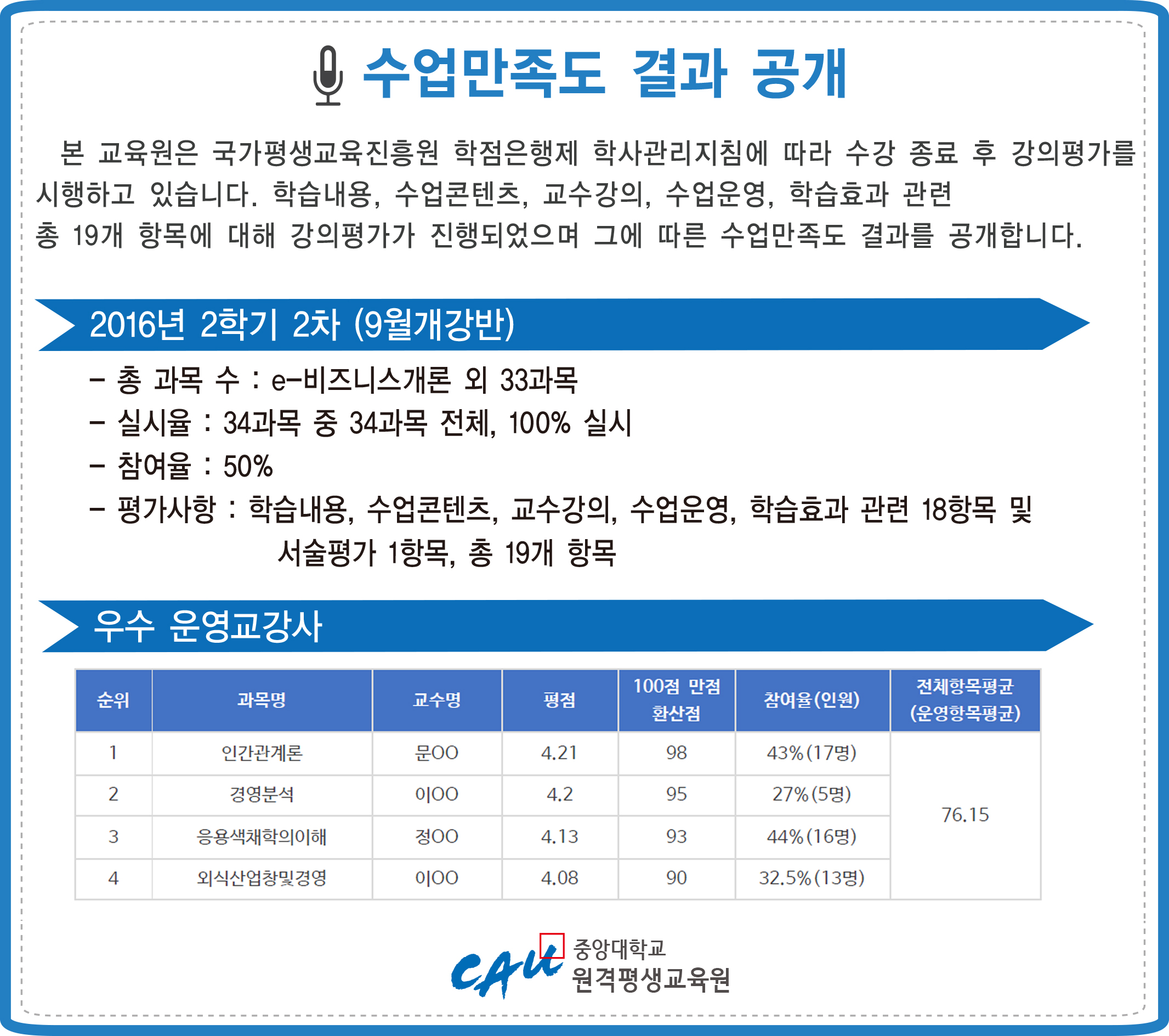 [강의평가]2016-2학기 강의평가 결과 보기