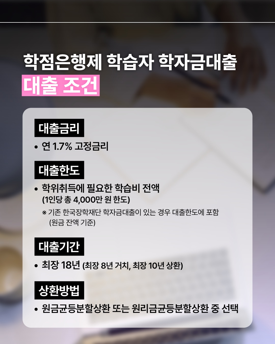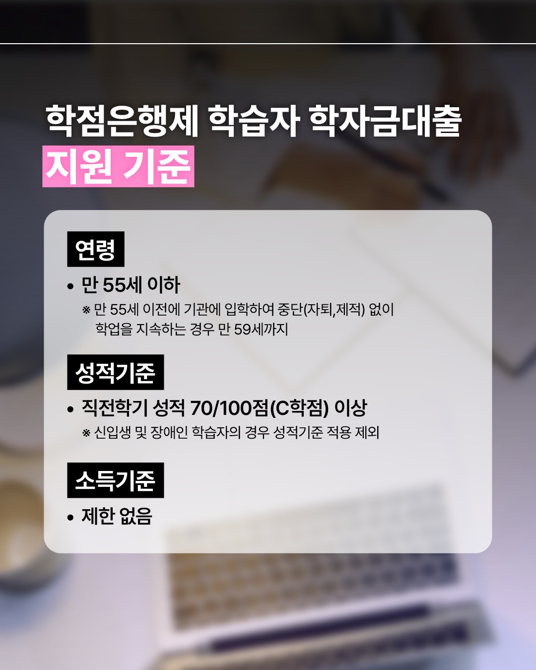 ※관련 자세한 사항은 한국장학재단 학점은행제 학자금 대출 안내 페이지를 참고하시기 바랍니다.