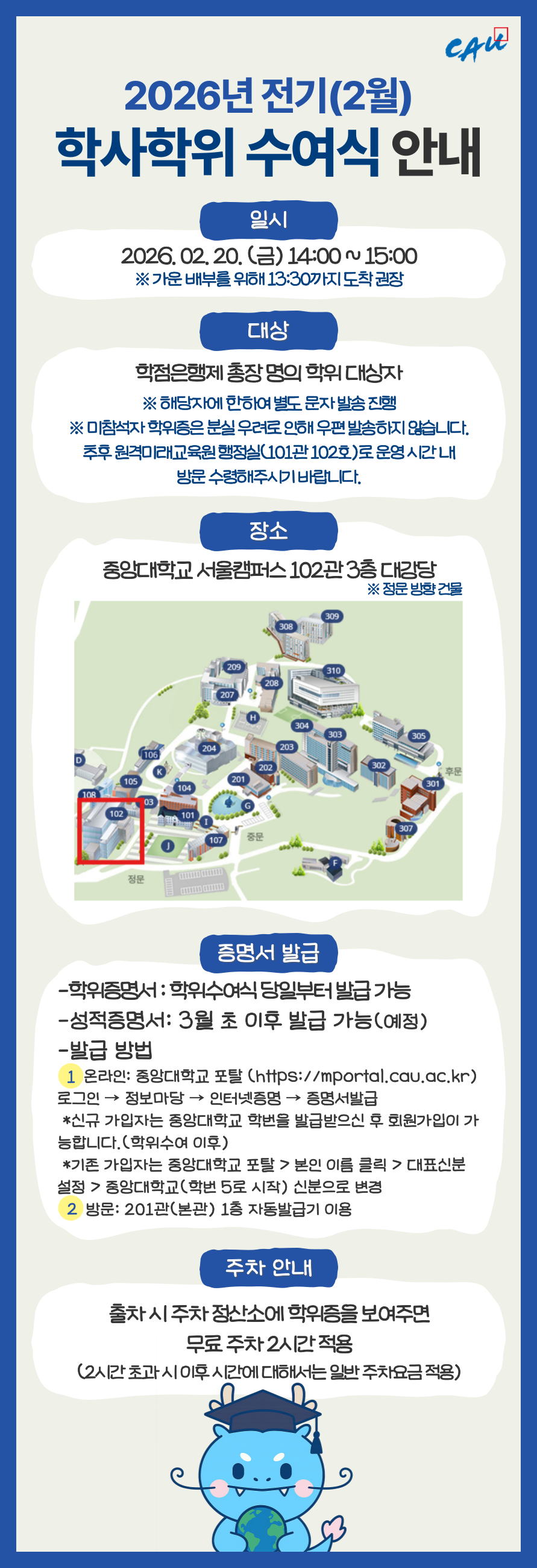 ※학위수여실 당일은 행정실 휴무로, 학사 및 기타 문의사항 관련해서는